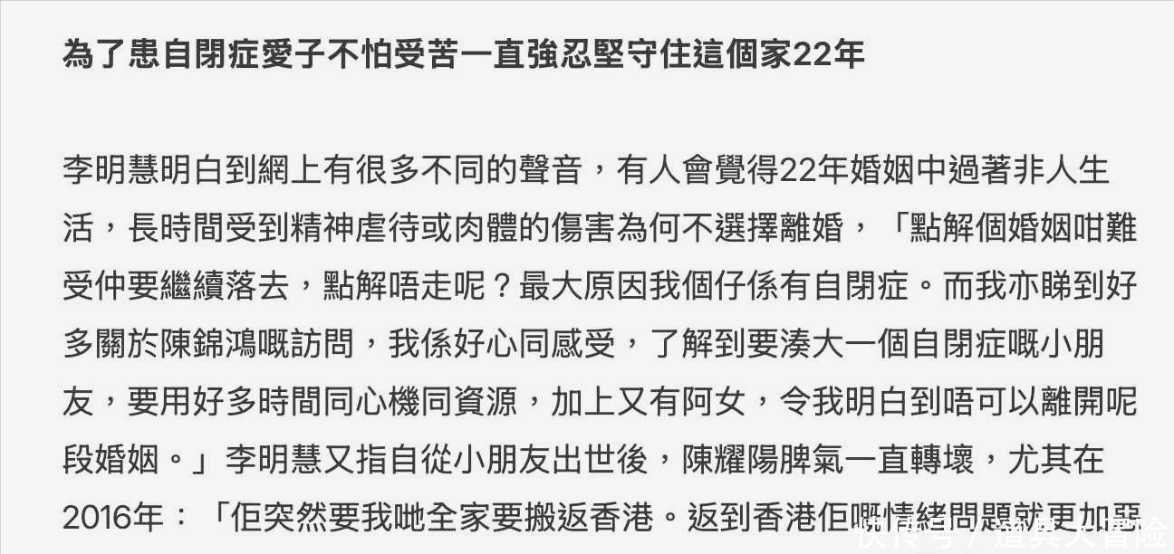 她一直没提离婚的事,不是不想离,是心里害怕,觉得自闭症的孩子得有爸妈在身边陪着,就算这个家早就散了也没关系,女儿长到十八岁那天第一次站出来帮她说话,大家这才知道她儿子有自闭症,她一个人带着孩子去医院做治疗,陪他聊天,哄他睡觉,连买药这种事她丈夫都懒得动手。很多人问这位母亲为什么能忍耐这么久,她并非为了钱财,陈家没有提供经济支持,反而要求她隐藏身份并生育孩子,华人社会常强调母亲应为子女牺牲,她也接受了这种观念,2008年时公众对自闭症了解有限,缺乏社工援助,她只能独自面对这些困难。